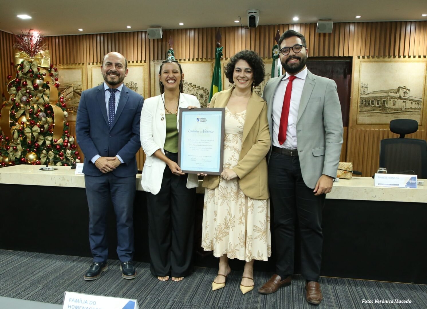 A Câmara Municipal de Natal realizou, nesta quarta-feira (12), a sessão solene “Natal pelo Clima: sustentabilidade e futuro”, ocasião em que foram entregues 22 homenagens a pessoas, instituições e coletivos que atuam na defesa ambiental, na educação sustentável e na construção de políticas públicas voltadas ao futuro das cidades. A solenidade também marcou a entrega do Título de Cidadã Natalense à advogada e pesquisadora Érica Milena Carvalho Guimarães Leôncio, por proposição da vereadora Brisa Bracchi (PT).